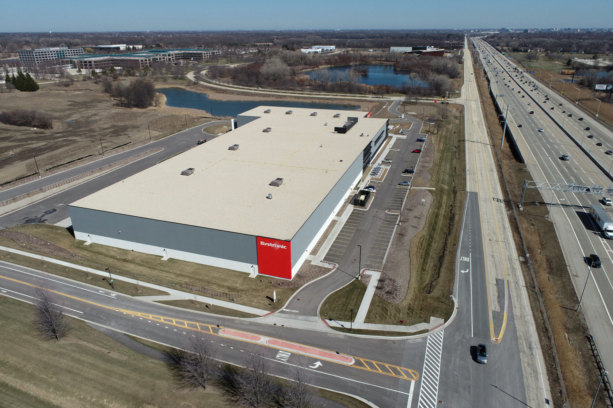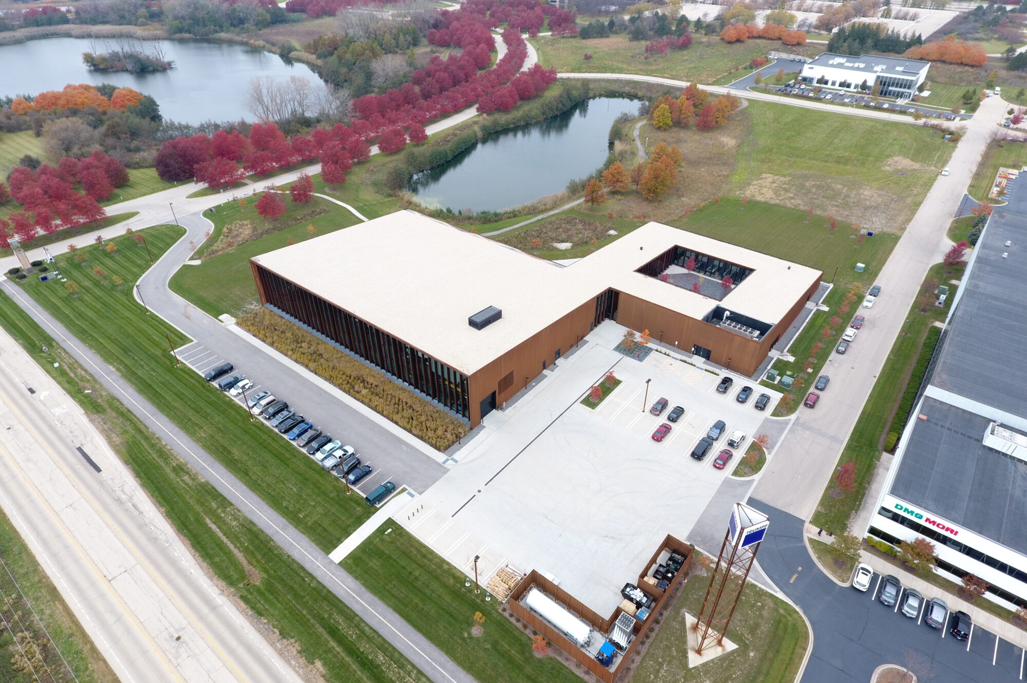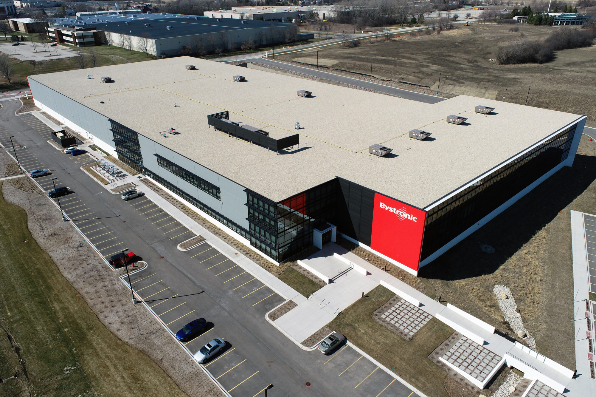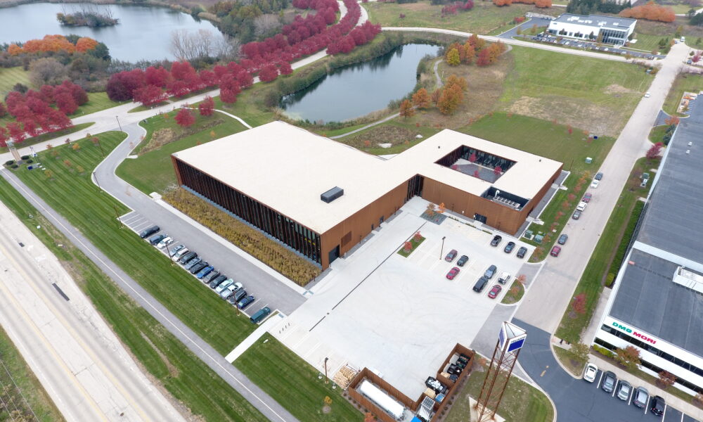 The Bystronic Experience Center encompasses 152,600 SF on an 11-acre site within the Huntington Woods Business Park. The facility features a two-story office space totaling 30,000 SF with a mix of open and private offices, a 1,500 SF mezzanine, a 102,800 SF warehouse and manufacturing area, and a striking 28,500 SF floating glass showroom, all designed to reflect Bystronic’s commitment to innovation, functionality, and customer engagement.