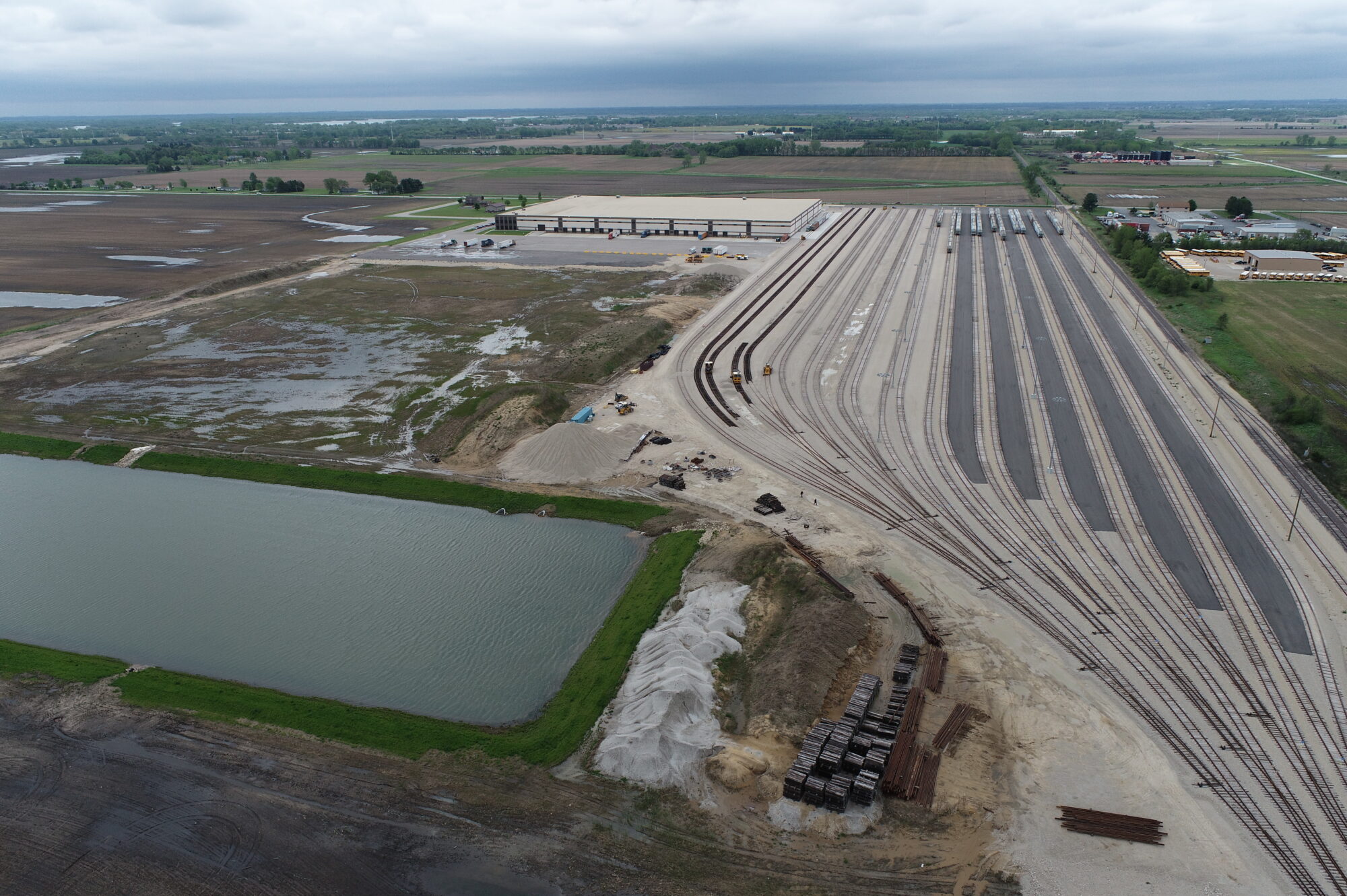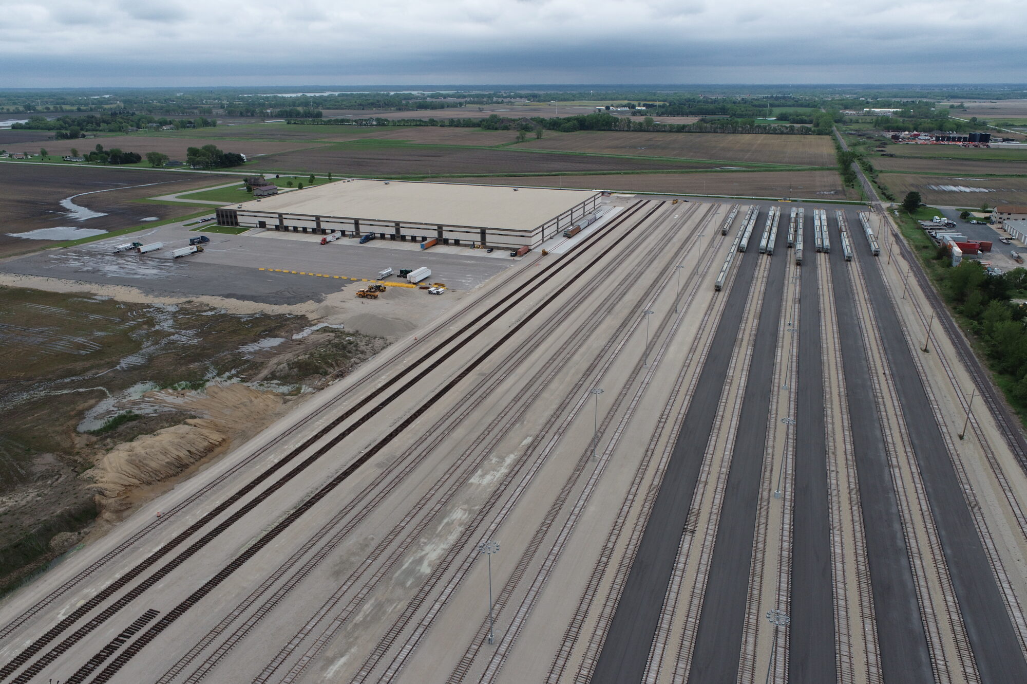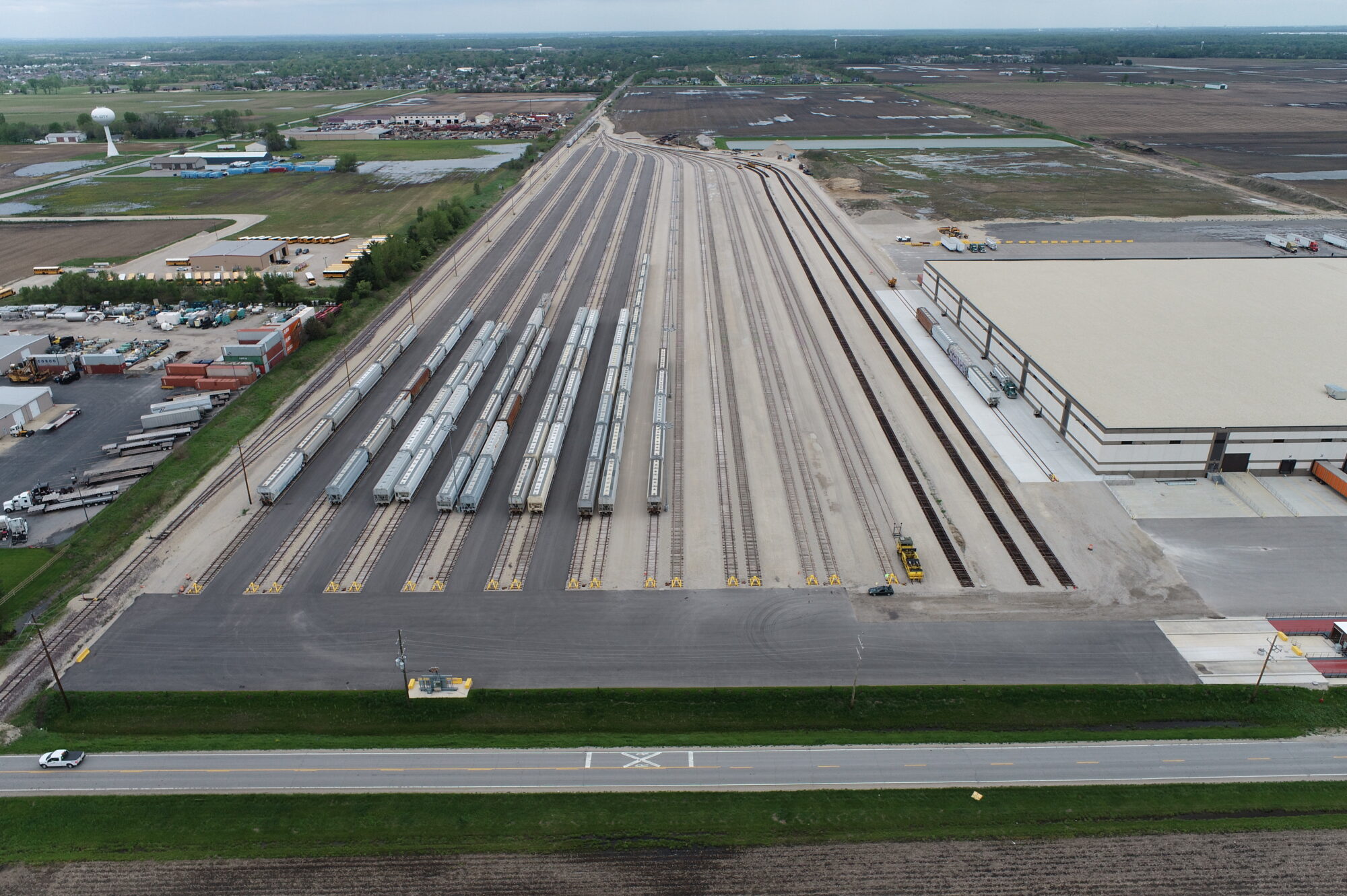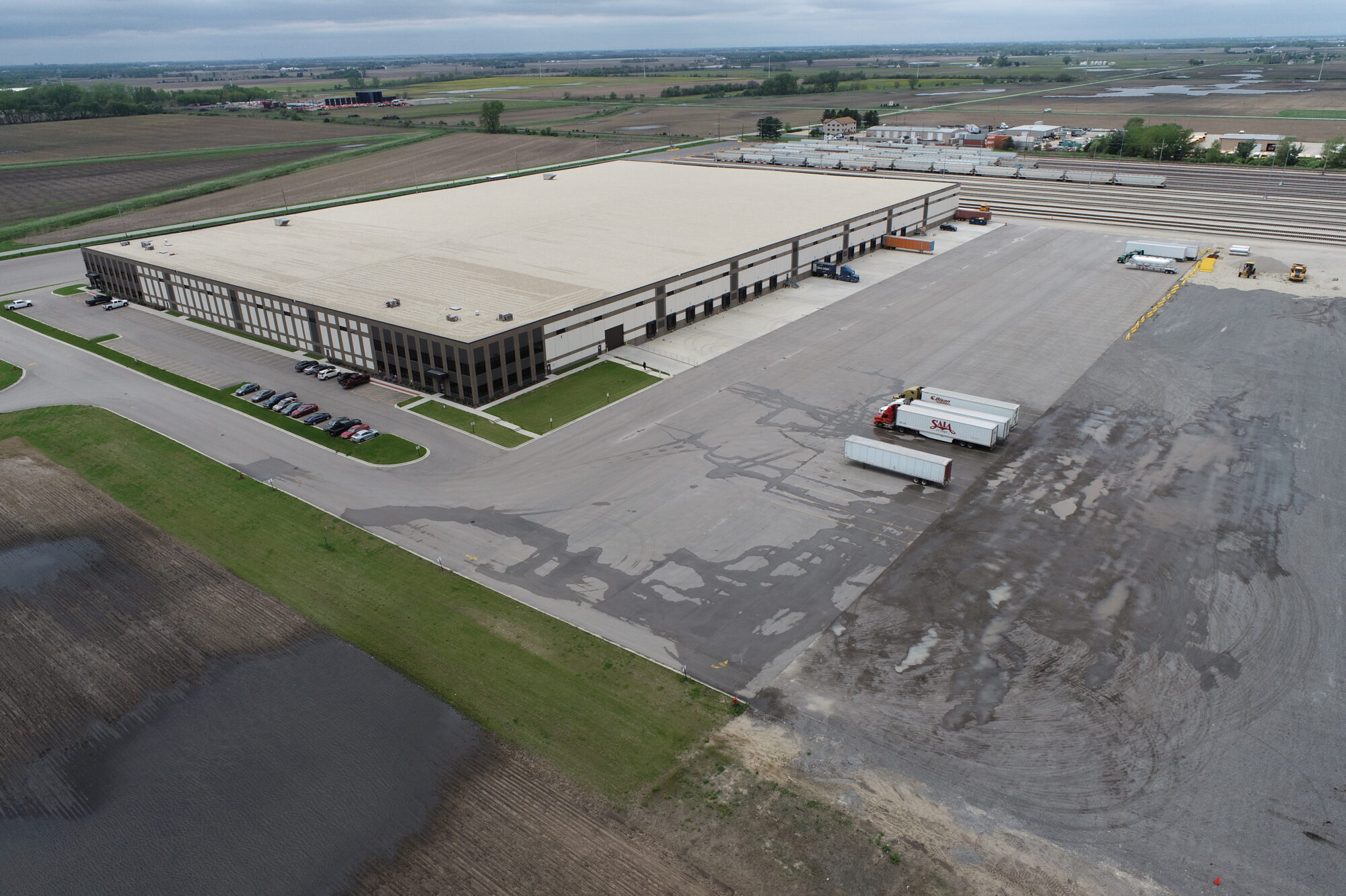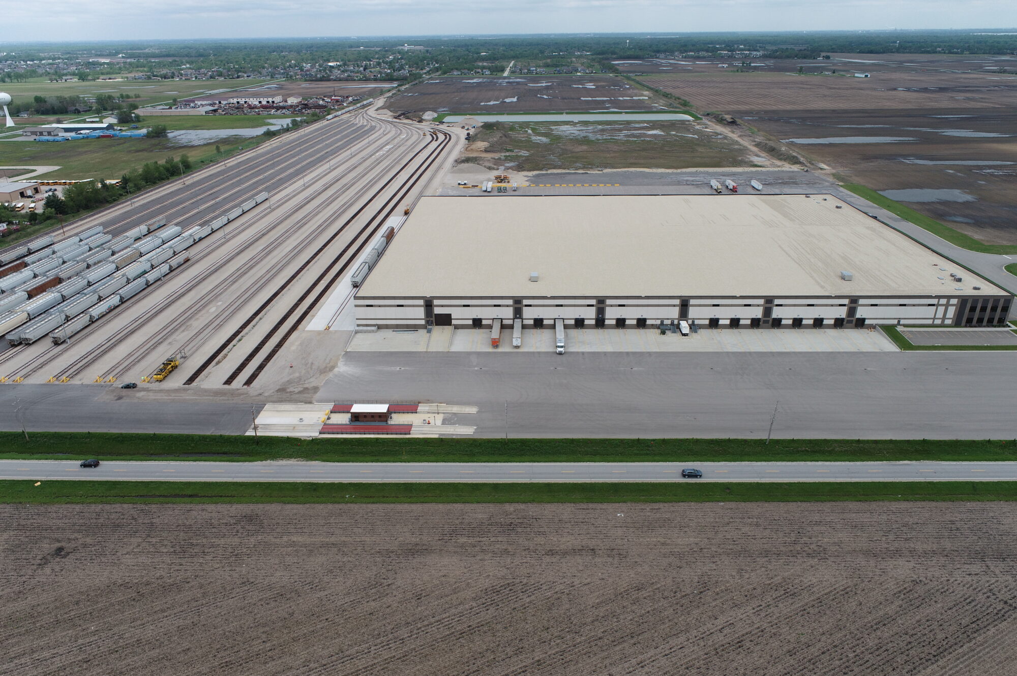 This 40-acre rail-served facility in Coal City, Illinois features a newly constructed 420,000 SF industrial warehouse and transload/packaging distribution center. Designed for high-volume logistics, the site includes an 800-railcar transloading capacity, depressed truck docks on one side, a railcar storage yard, semi-trailer storage and washout facilities, integrated office space, onsite utility upgrades, and site grading to support future development.