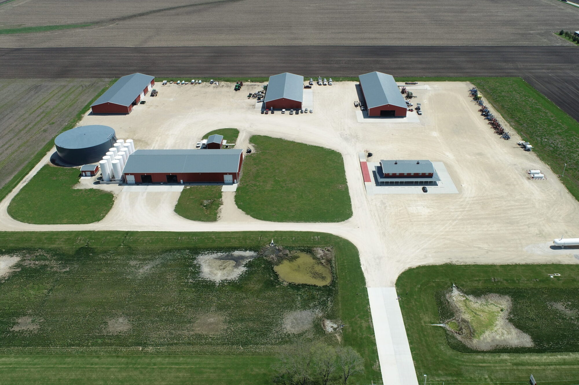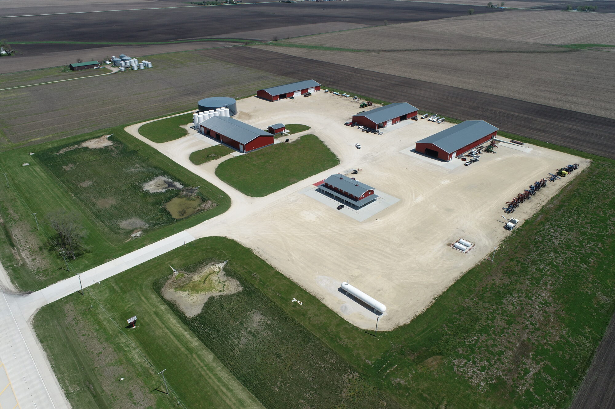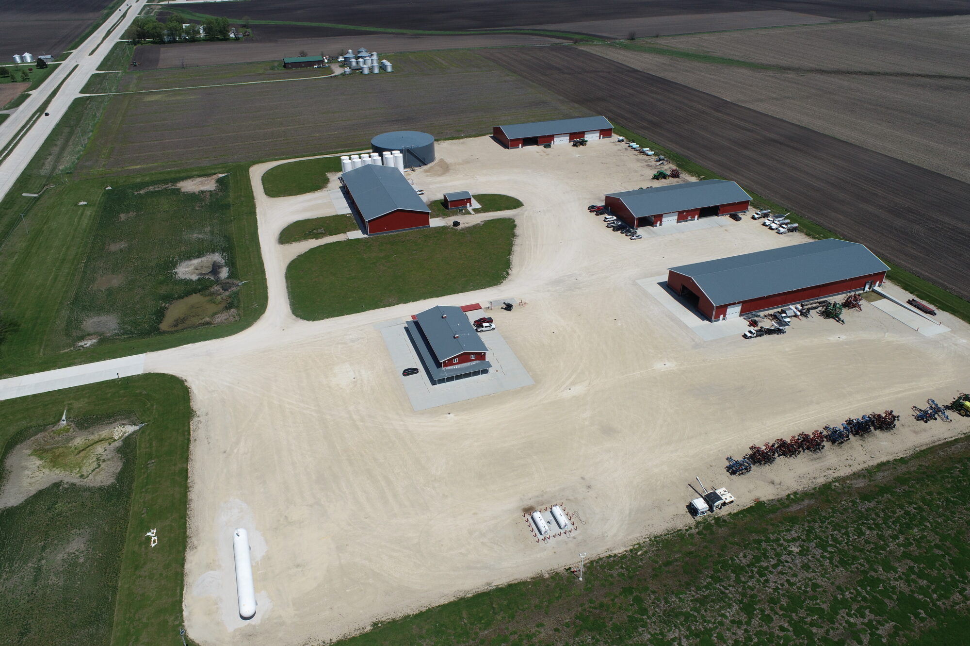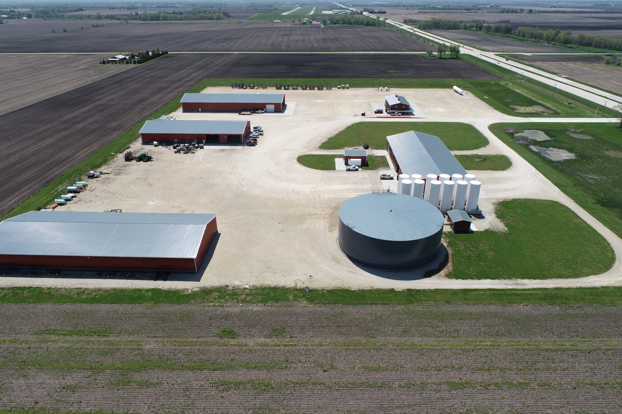 GRAINCO FS is a 27-acre fertilizer facility located in Morris, Illinois. The site includes seven structures: an office building, maintenance shops, a 104-foot diameter tank, and three storage buildings. The project scope involved extensive onsite utility upgrades and the construction of internal roadways.