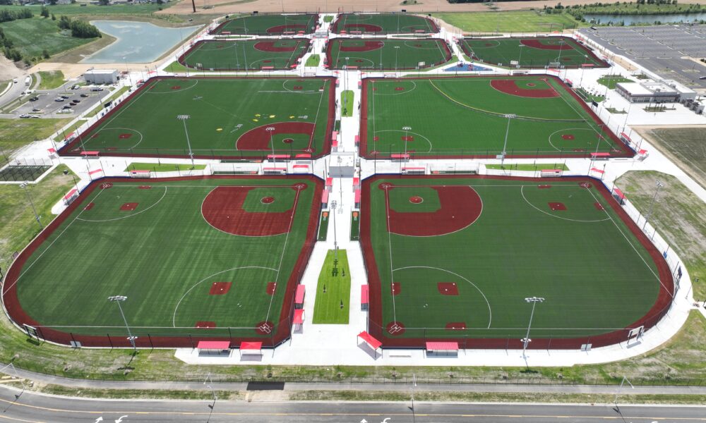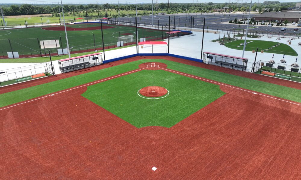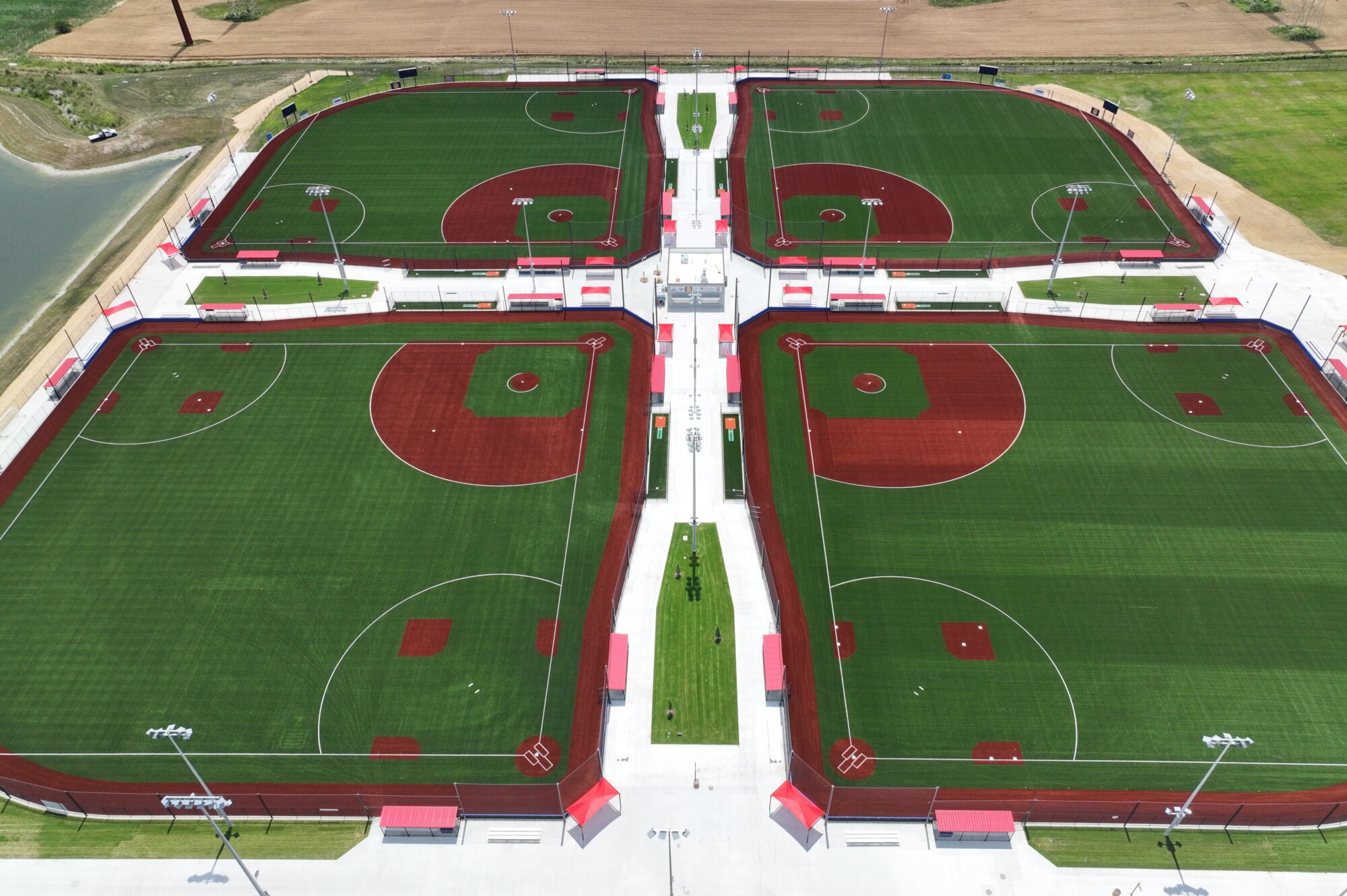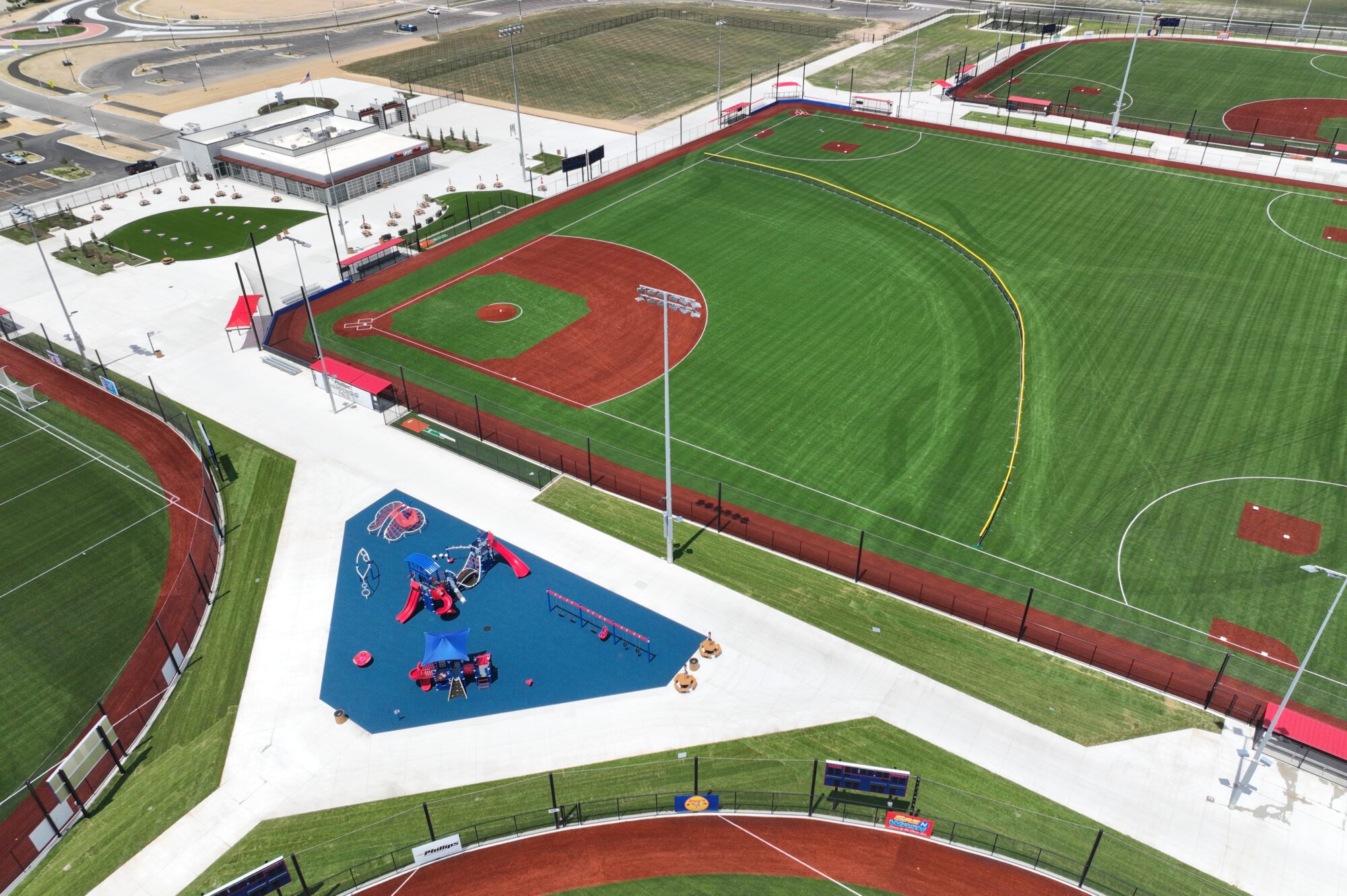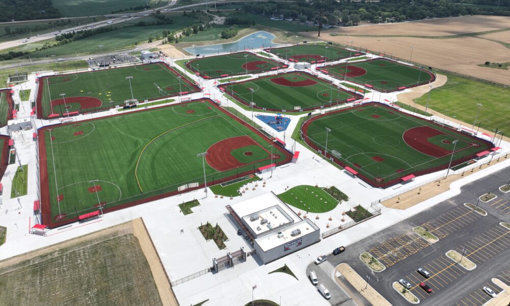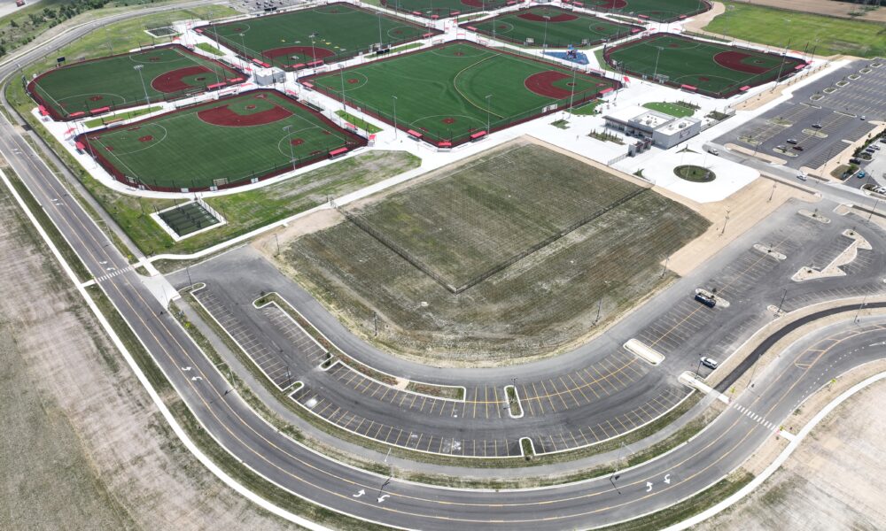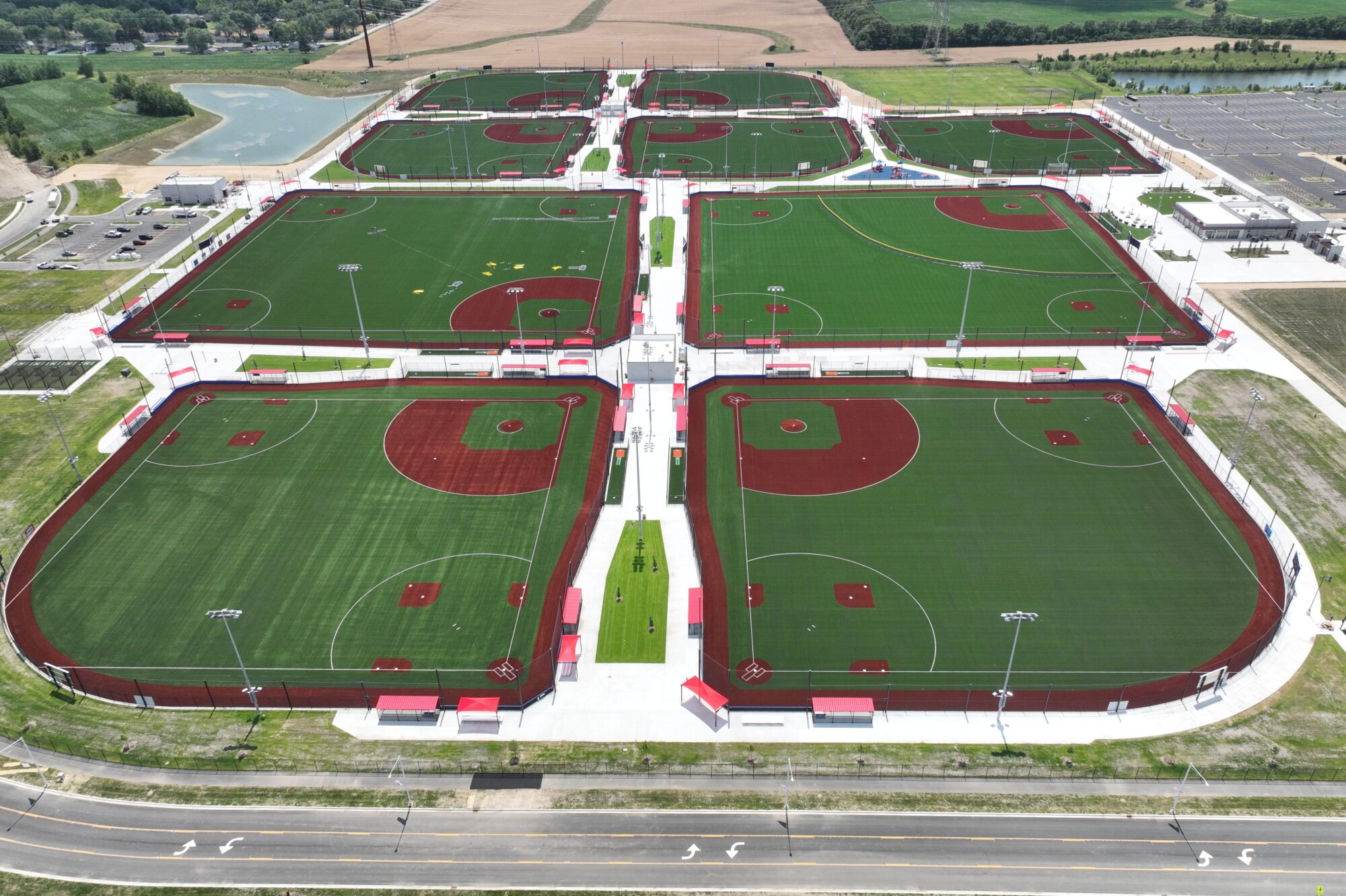 The New Lenox Crossroads Sports Complex spans 105 acres and offers a wide range of amenities for youth and adult recreation. The site features a welcome center, 22 youth baseball and softball fields, nine full-size fields, and 11 soccer or multi-use fields. Additional amenities include two full-service concession stands, a beer garden, a playground, and ten batting cages. The project also included a roadway extension and the construction of a roundabout to improve site access and traffic flow.