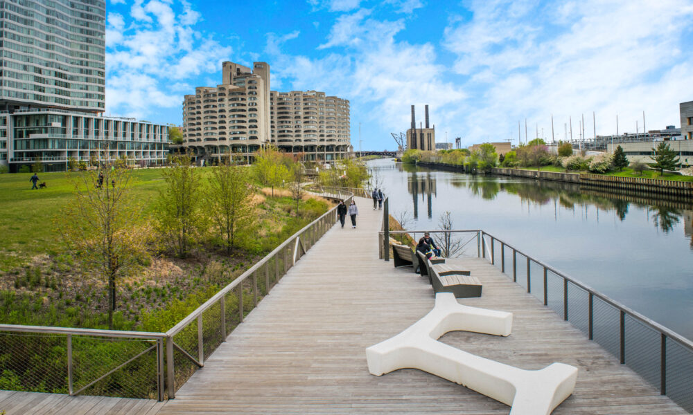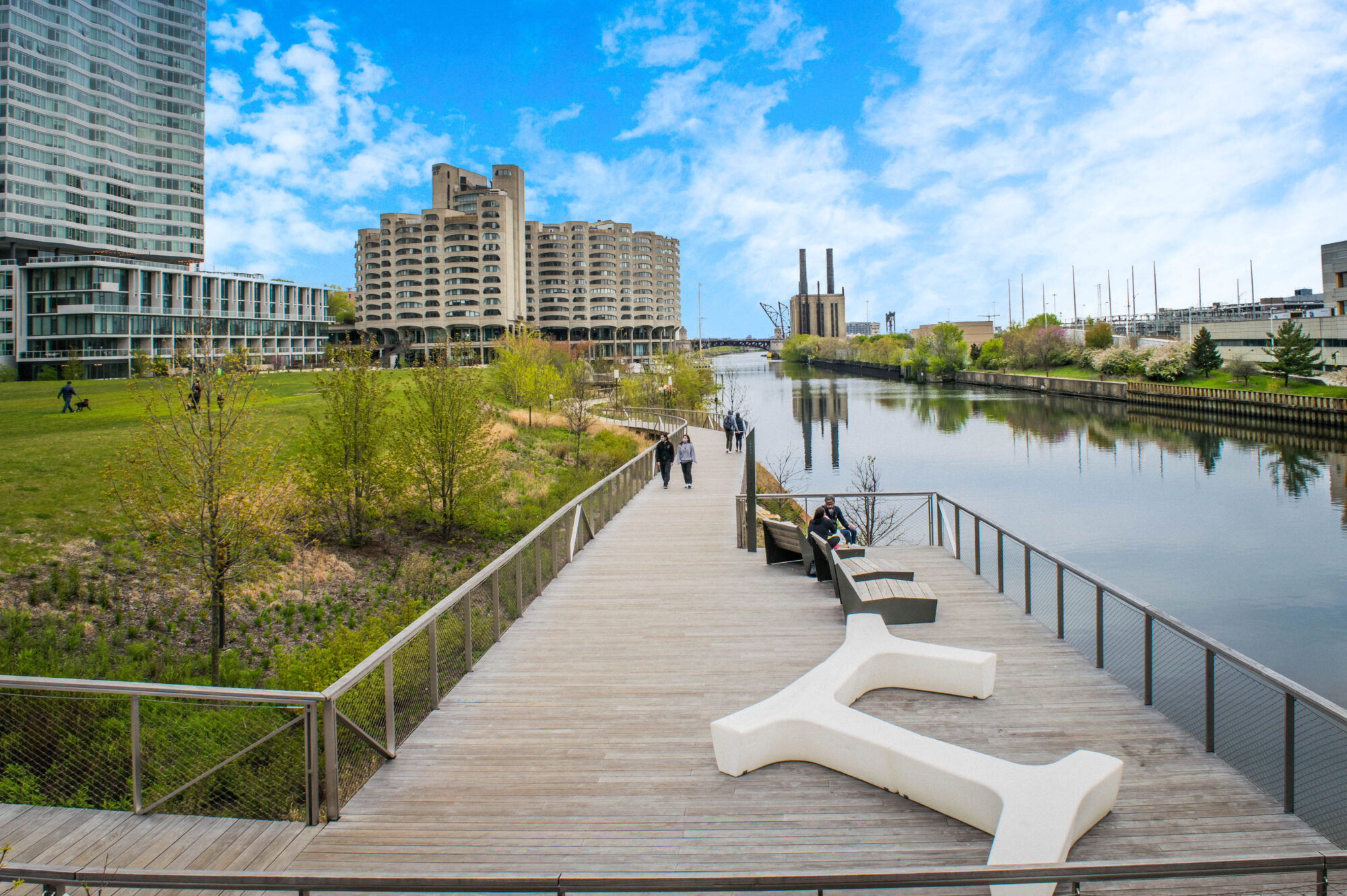 Southbank is a transformative redevelopment of a 6.5-acre environmentally impacted site along the Chicago River, featuring 2,000 LF of river frontage. The project includes two high-rise residential towers with a total of 884 units, a 2-acre private park, a naturalized detention pond, green roofs, and a newly constructed seawall. It also introduced 272,000 SF of retail space, creating a vibrant mixed-use community. In recognition of its environmental and urban impact, Southbank received the Silver Ribbon Award from Friends of the Chicago River in 2020.